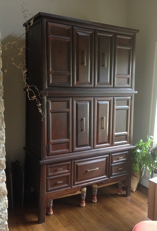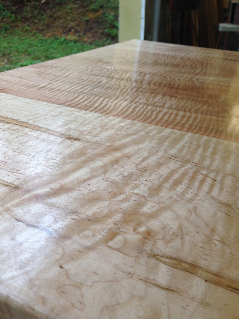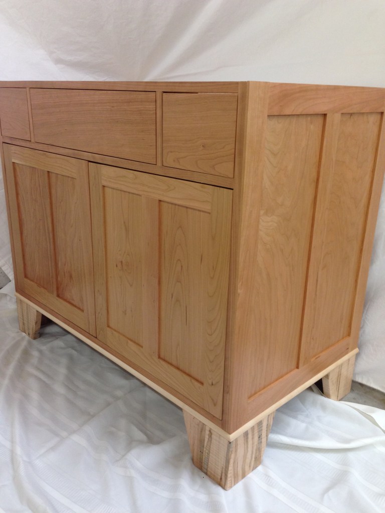 Gallery Table Top Custom Molding Tapped Handles Accent Table Butterfly Joints Cherry and Maple Vanity Paduak and Maple Tallboy Dresser Paduak and Maple Dresser Walnut Mongolian Media Hutch Hickory Bookcase Vintage Seat Leg Update